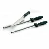 Keep your kitchen knives razor sharp and ready to go with a Chef’s Choice Diamond Steel. It has an oval shape, which allows for a greater contact area between the knife and the diamond area. The steel is coated in 100% ultra fine diamond abrasives, so it simultaneously lightly hones as it realigns the knife edge. The light and perfectly balanced diamond steel from Chef’s Choice also features an easy to grip, non-slip textured handle