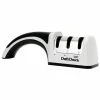 Suitable for the home or professional chef, this sharpener from Chef’s Choice uses diamond to quickly and accurately sharpen any straight-edged or serrated kitchen knife. Featuring three stages of grinding to improve the edge on your knives, this grinder aims to produce an exceedingly sharp, professional-quality, durable edge. It comes in white with a plug provided.