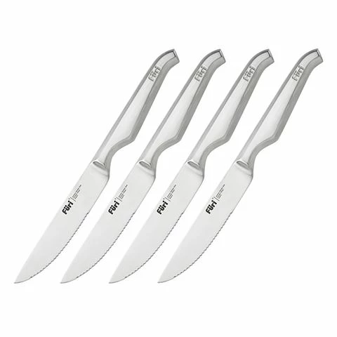 The Füri Pro Steak Knives Set 4pce is designed for performance, precision and comfort. The Japanese stainless-steel tech edge blade, along with the reverse wedge handle, combined with a precise serration, makes it perfect for cutting steaks and other meats.