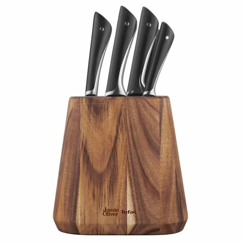 Prepare for some fancy knifework in the kitchen with Jamie Oliver’s Tefal Knife collection. It’s been ice hardened for superior performance and crafted with premium German steel. Experience it in style with the Jamie Oliver Knife Block Set, which is essential for cooking and prepping. Whether you wish to slice crusty bread, fillet fish or even remove the seeds from chilli – Jamie Oliver has the right knife for you. They’re stored in a stylish, responsibly sourced acacia wood block.