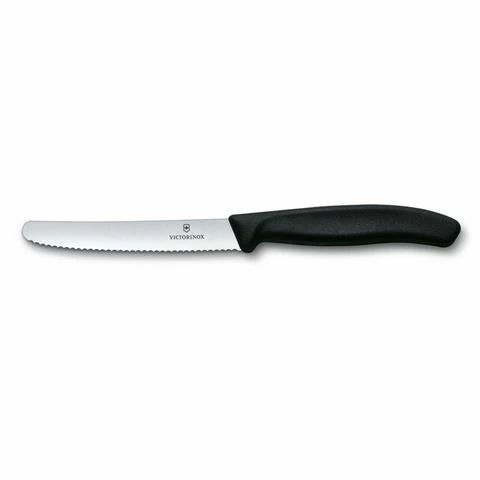 Cutting into a juicy steak with a quality Victorinox Steak Knife might seem a million miles from the original military uses of army knives, but the two products do have something in common: they’re engineered to be the right tool for the job. Because a single knife cannot do every job in your kitchen, Victorinox supplies a range of knives to perfectly meet every requirement. This professional standard knife is made from tempered, annealed and polished stainless steel which retains its sharpness cut after cut.
