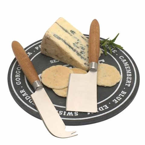 When it comes to cheese, they know what they’re doing and recognise that each specific type of cheese needs to be cut with its own knife. That knowledge is what drove them to create the Round Slate Board with 2 Knives.
