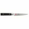 The Japanese vegetable knife: extremely versatile and suitable for tasks such as cutting, dicing or chopping. Its shape is reminiscent of a cleaver but should not be confused with it as a Nakiri is not suitable for rough tasks (such as splitting bones). The very sharp and finely ground blade is more designed to prep vegetables, herbs and fruit very quickly and finely. The dimpled edge of the knife (slight depressions in the blade that allow small pockets of air to form) prevents ingredients from sticking.
